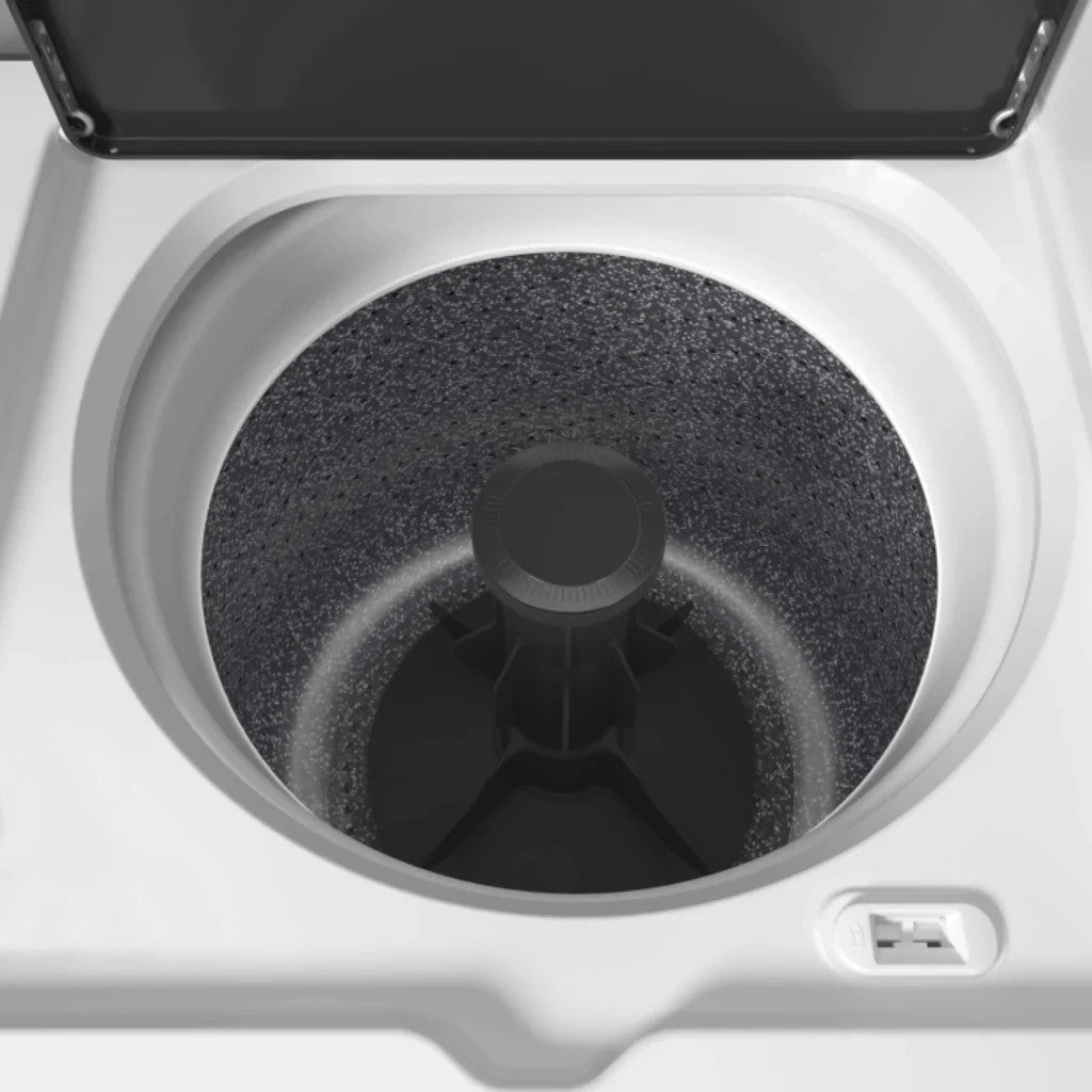 The washer is equipped with a highly effective deep-water wash and rinse system, which uses vigorous cleaning action to ensure optimal washing performance. The traditional flex-vane agitator operates with four distinct wash patterns ranging from aggressive to gentle offering exceptional rollover for large loads and deep-cleaning action. Moreover, items can be conveniently added to the load during the wash, fill, and rinse stages by simply lifting the lid.